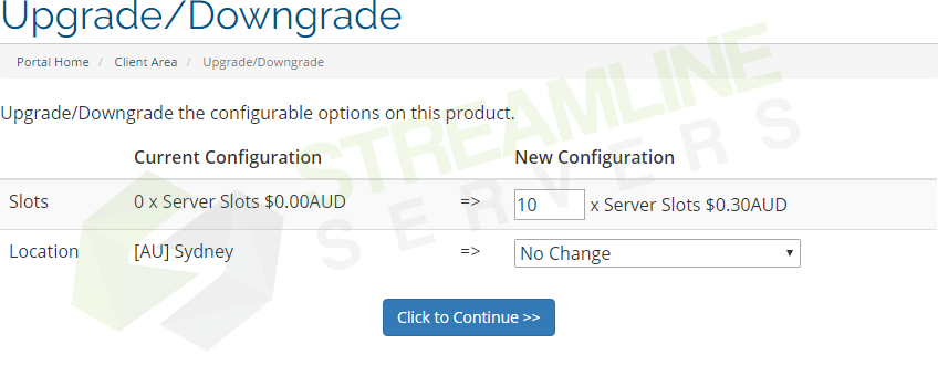- You can now select what you wish to upgrade. Please place in a Support Ticket to process a location change.
