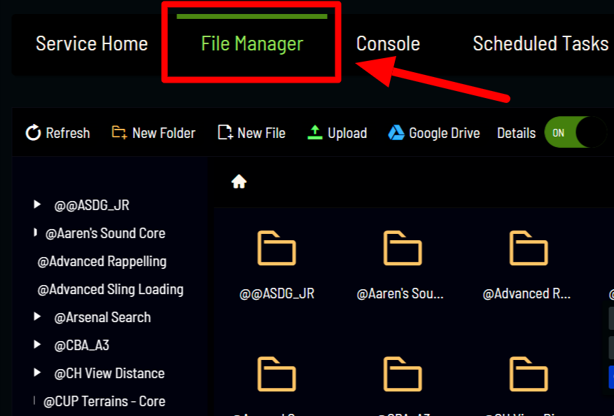 Step 1: Go to your game panel and open your File Manager, where your server files are installed.